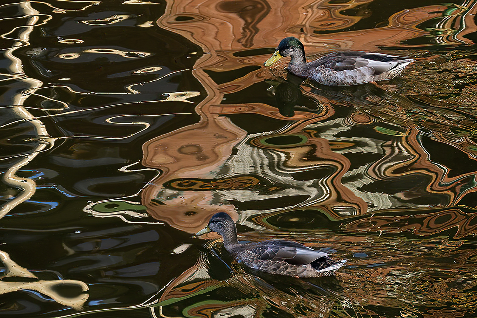Ducks In Refections, Prague